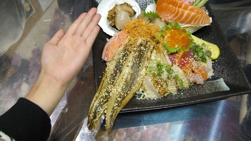我就吃了鰭邊肉炙海鱺、蟹膏炙鮭魚~哇~後悔其它給老爸了!!!
