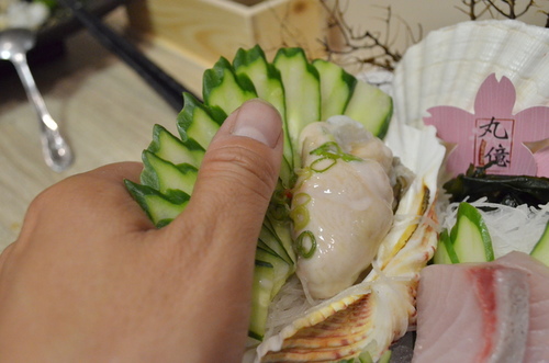 又是一個近拍~~我的生蠔呀!!!!~生魚片還捲成花的形狀~又美又好吃~