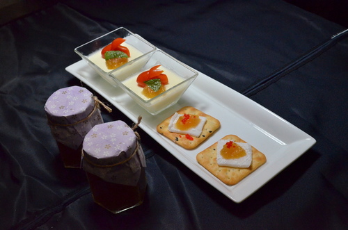 這是1314套餐裡的-甜在心頭 :(左)手工米布丁,上方醬料是丸億師傅手工熬煮鳳梨果醬(會因季節不同果醬會不同),(右)果醬餅乾,因為果醬屬較甜食物,所以下層會用帶鹹的餅乾綜合口感,鹹鹹甜甜的~果醬是用當季水果加冰糖慢火熬煮,中間不加凝結劑百分百純天然~好吃!!店內也有限量販售唷~