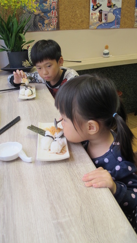 兩個好像真的餓了....還好有小飯糰先止餓...