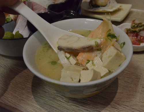 這是味增湯~滿滿豆腐跟鮭魚~太犯規了!!竟然還可以續碗!!!!
