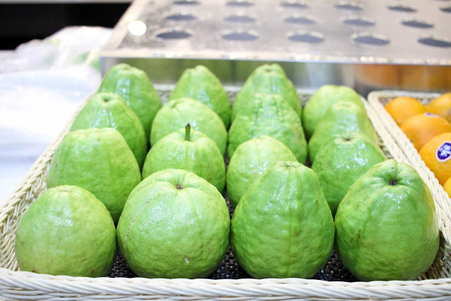 芭樂多標榜新鮮現打果汁,店門口直就放置著一藍的芭樂。