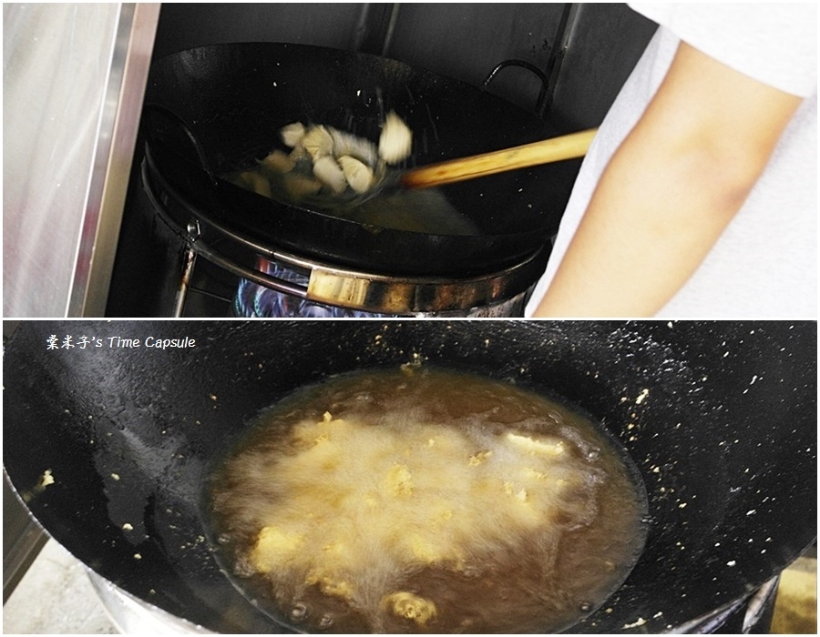 看著鍋裡翻騰的臭豆腐塊,聽著ㄆ一 ㄆ一 ㄆㄚ ㄆㄚ的油炸聲,