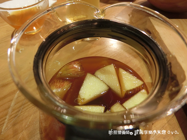 另外蘋果蜜茶的上層浮著新鮮蘋果丁,喝茶之餘還能有爽脆的口感,還蠻特別的