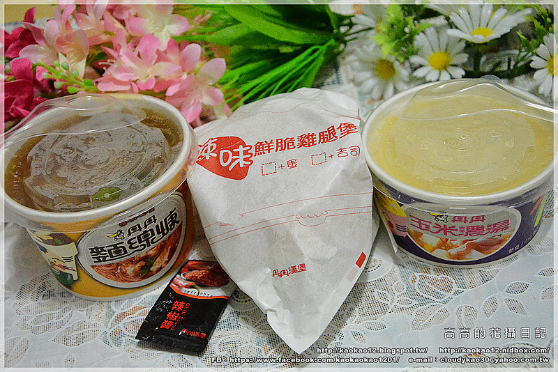 一個鮮脆雞腿堡(可選原味或辣味)、一碗麵線羹、