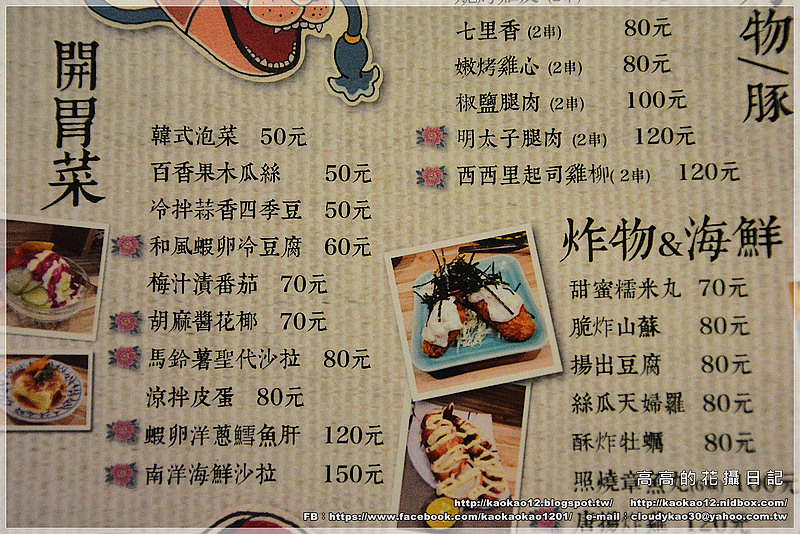 這張是從『燒鳥橫丁粉絲頁』下載的完整菜單圖,