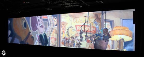▲「藝術風景」區把多年的手稿濃縮成短片,可以得知皮克斯藝術家看待作品的角度,並身歷其境體驗皮克斯的動畫世界。另外還有一區是「3D幻影箱」,將《玩具總動員》角色擺進3D幻影箱,利用視覺暫留的效果,讓玩具們在你面前動起來!這就不拍照給大家至現場好好見識囉!