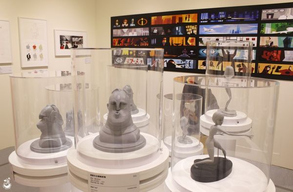 ▲策展人Elyse Klaidam 親切為大家導覽,她表示製作動畫時每一個人物的表情都很重要,都必須去刻畫出來,《超人特攻隊》這區特地展出了各種表情的主角Bob雕塑
