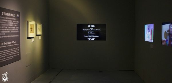 ▲皮克斯的短片動畫介紹區,牆上還撥放著幾則短片