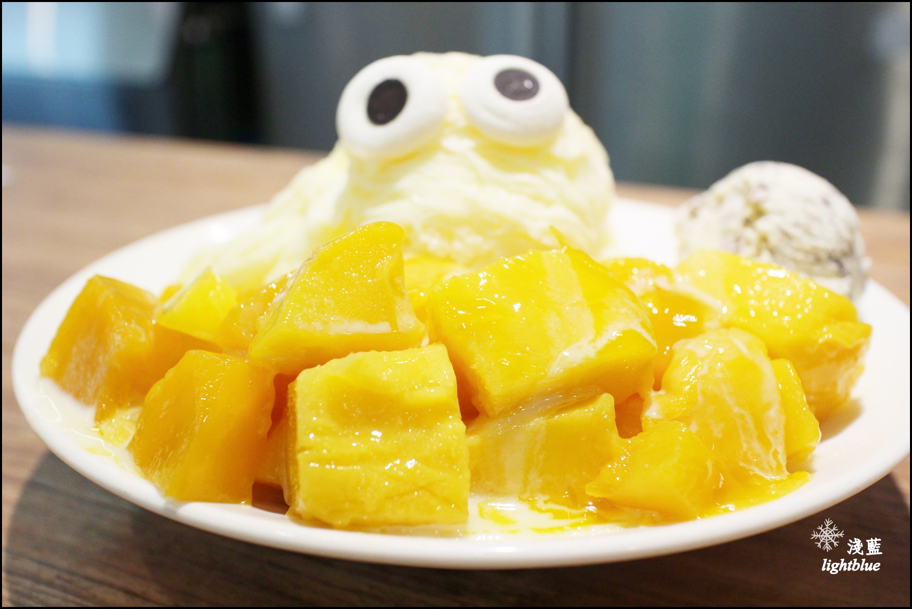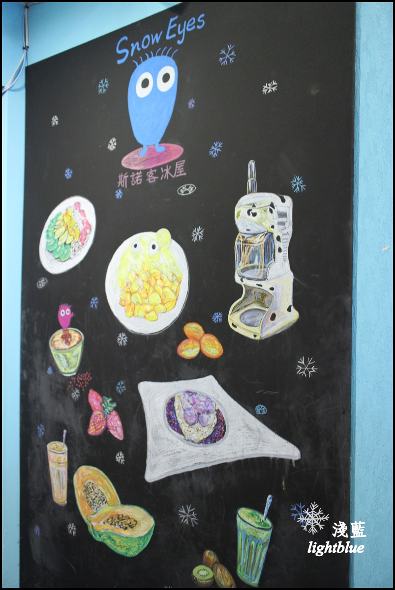 週邊冰店咖啡店雖然不少,不過我鍾情雪花冰,所以走了一小段來到斯諾客雪花冰,門口的這隻小怪物似乎是代表關東煮,讓我疑惑了一下,後來才發現原來他們既有雪花冰又有關東煮