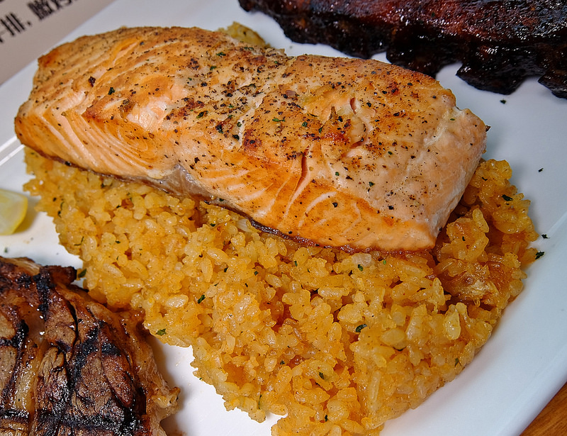 這看來更厲害一點, 中間的是一大塊很棒的烤鮭魚