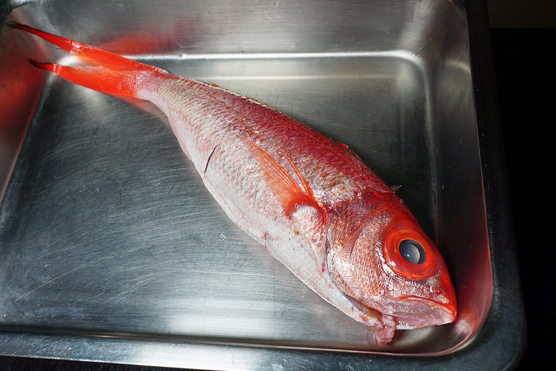 又稱長尾濱鯛, 鮮紅色很漂亮的魚,很高檔的魚,之前在宜蘭吃高級無菜單料理有吃過