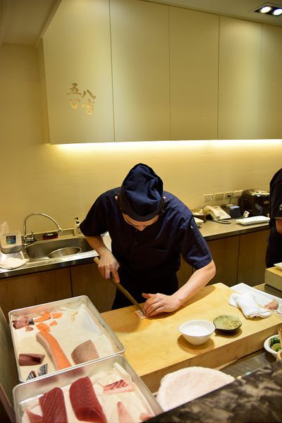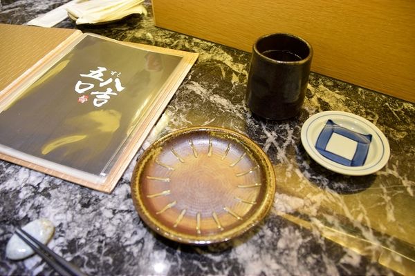 我們挑了吧檯的位置落座,是個很好偷看帥廚師欣賞廚師刀工的座位~