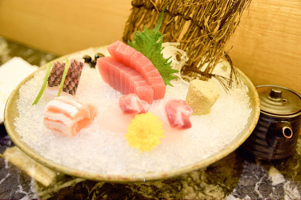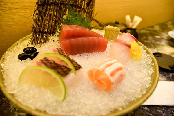 上菜速度滿快的,這是第一道,季節性盛合刺身7片