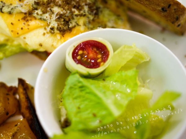 鮮脆萵苣的撐托之下 是番茄與水煮蛋切片堅守岡位的守護
