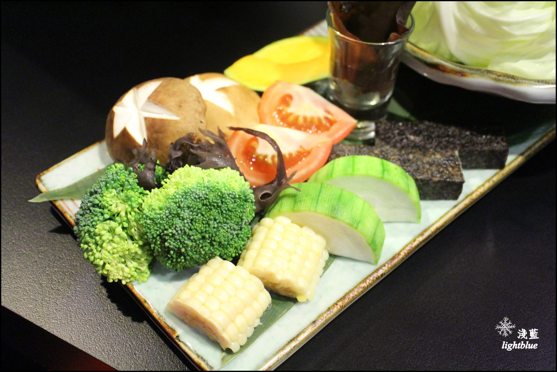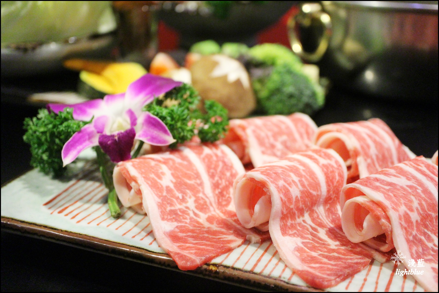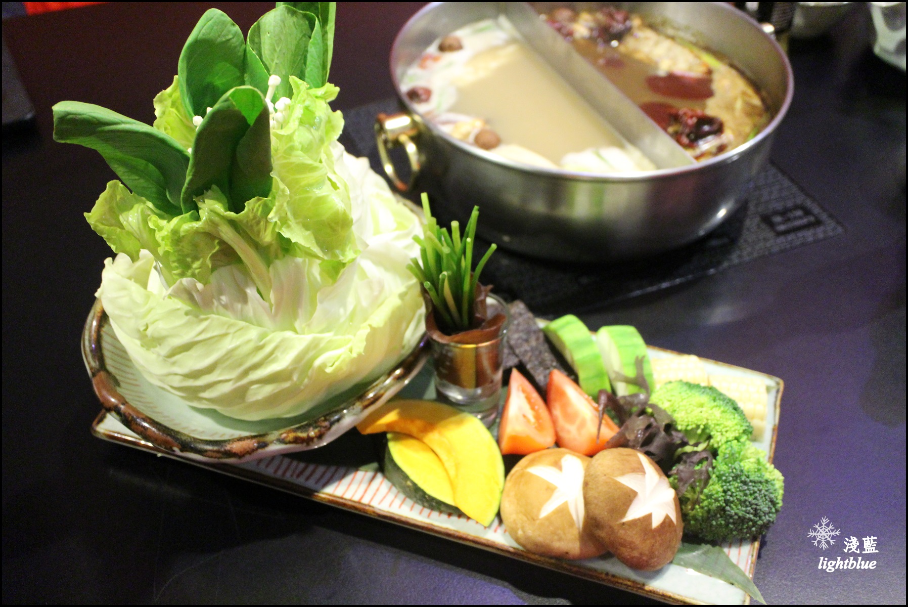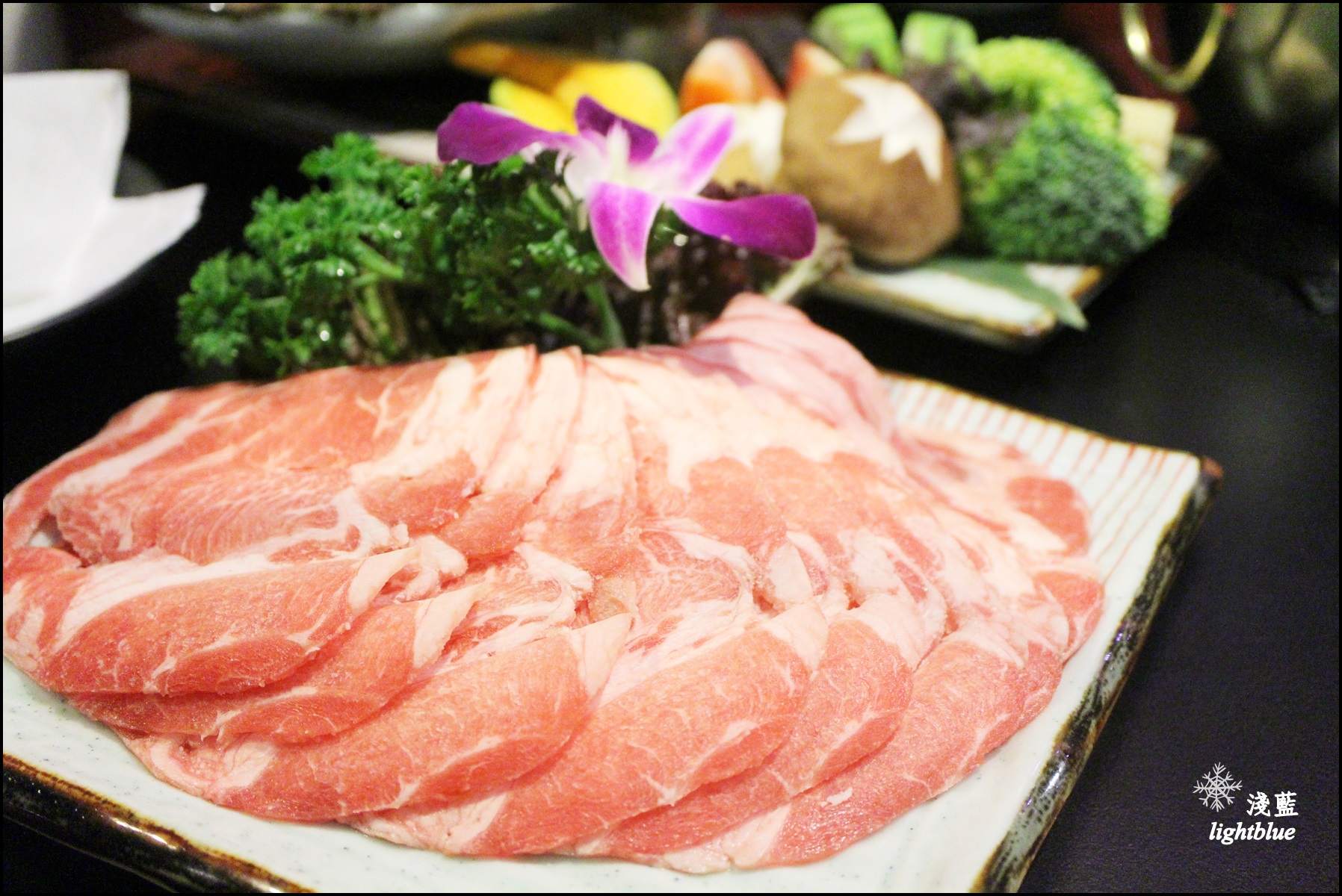 不得不說這樣真的好美啊,好吧,沒有龍蝦頭,有肉肉作成的花也很讚!松阪豬不只擺盤美,口感QQ脆脆,而且每一口都有飽滿的豬肉甜味,這個就跟養生鍋比較搭