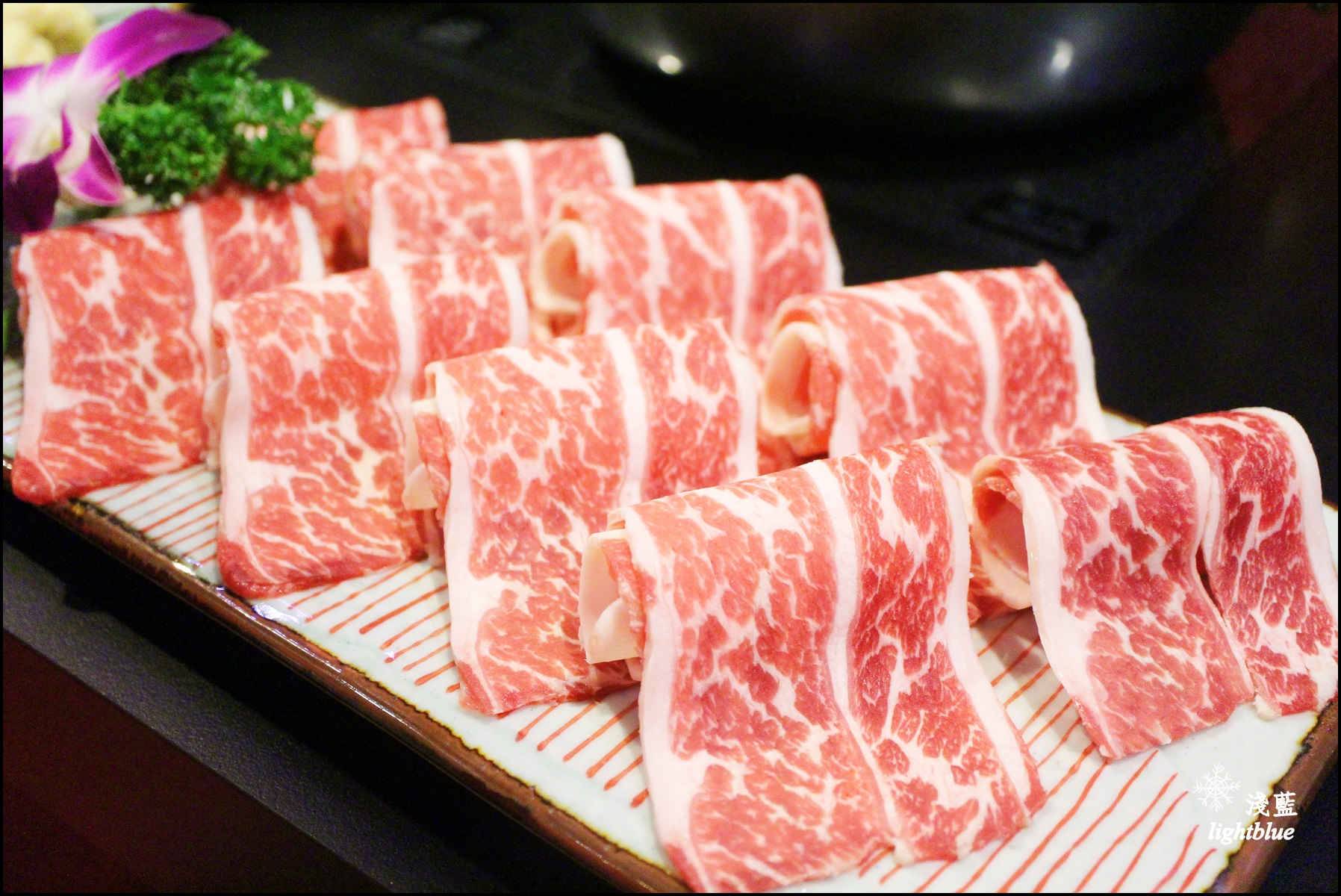 滿滿一整盤,吃起來很過癮,我推薦用麻辣鍋底涮一下就好,五分熟的口感最讚