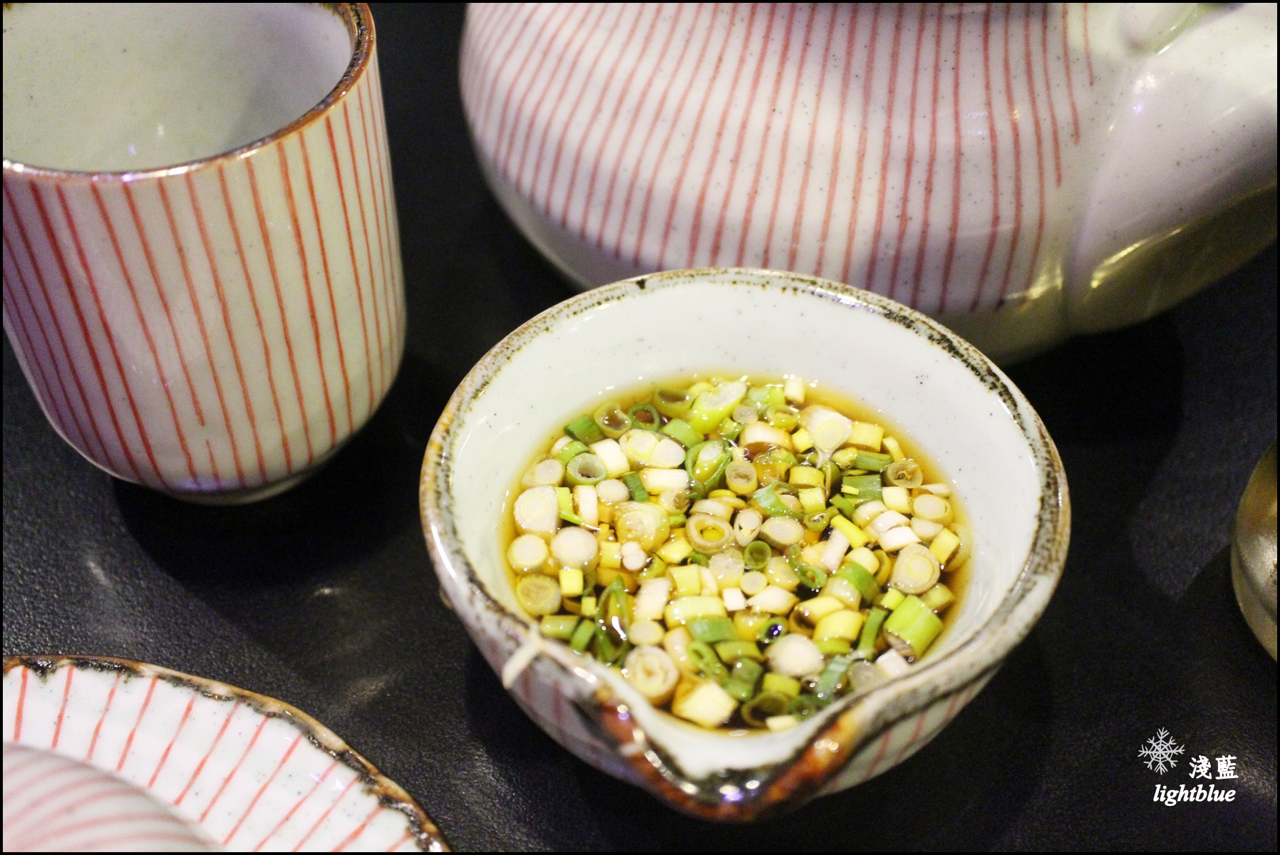 沾醬是廚房直接給一碗清爽的日式口味,不過可以另外再要求要大蒜或乾辣椒,