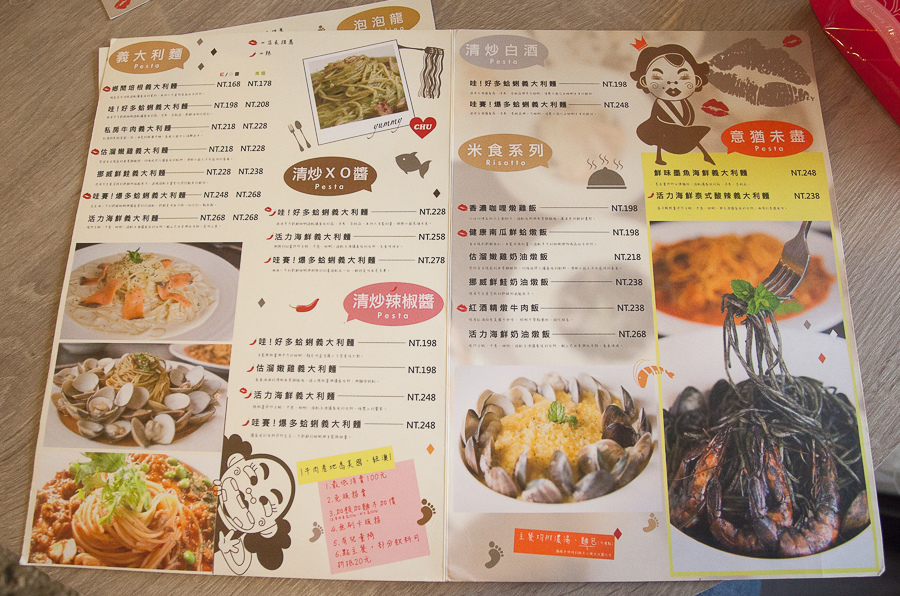 店內主要就是賣義大利麵跟燉飯為主 還有搭配一些炸物跟飲料