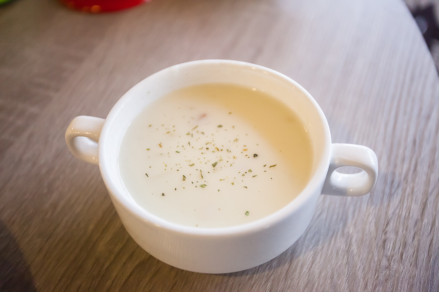 點義大利麵附贈的香蒜麵包跟玉米濃湯