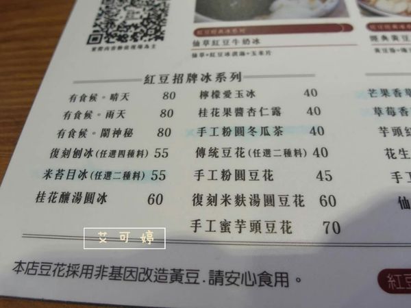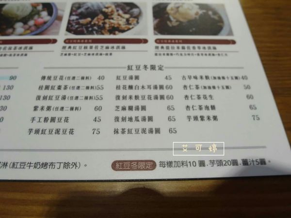 四種料佐以核桃、芋圓、湯圓、紅豆及抹茶粉