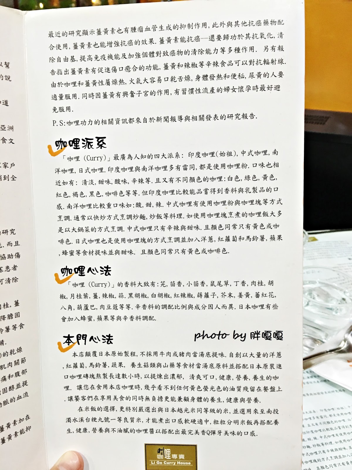 菜單上會有一些咖哩的介紹