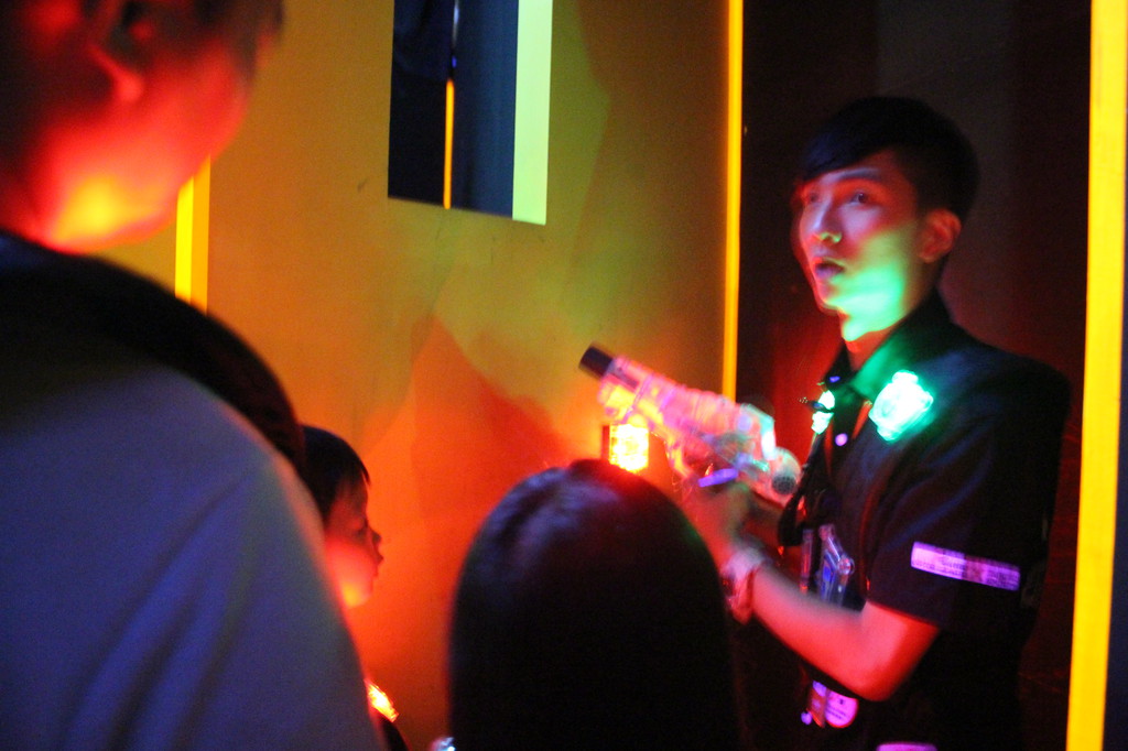 由工作人員幫我們解說星際戰場的裝備和你的雷射槍裡面有