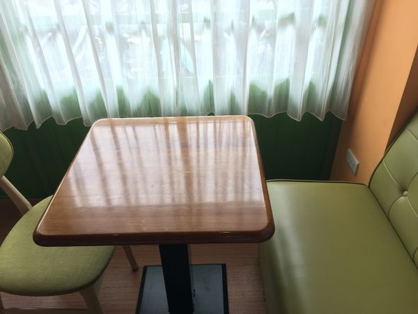座位為木頭材質+綠色椅墊