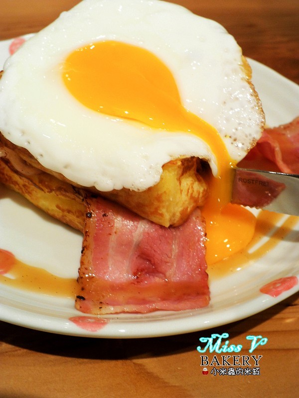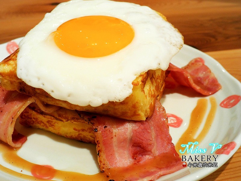 肉桂捲酥香濕潤,沾上了稠滑香醇的蛋液,還有鹹而香脆的培根