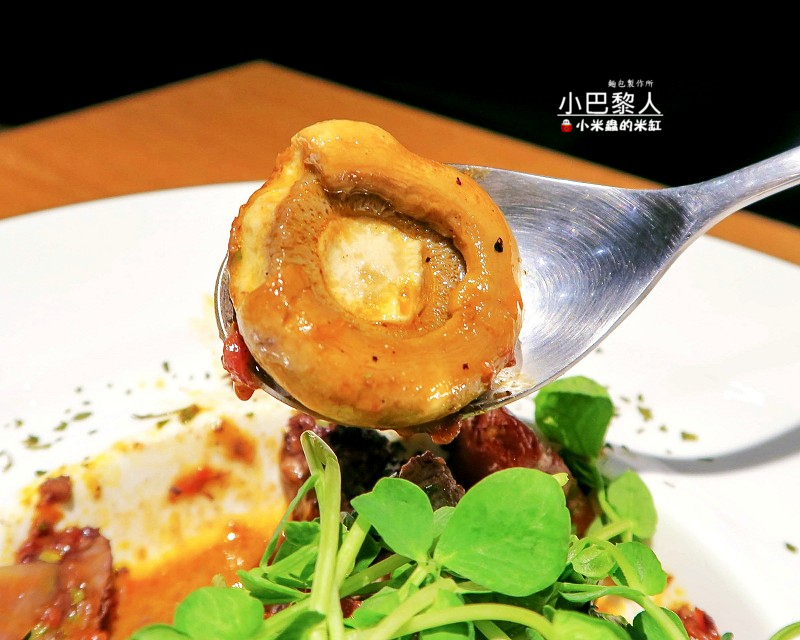 大而飽滿的洋菇咬起來Q脆多汁,很好吃呢!!