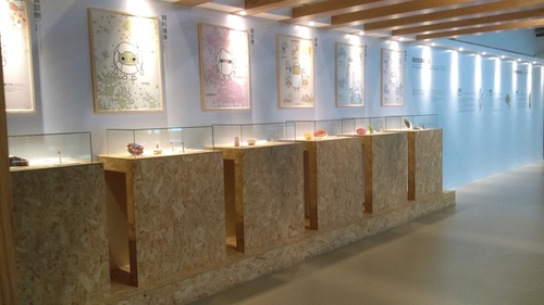 櫃檯旁邊牆上滿滿關於工廠的介紹~