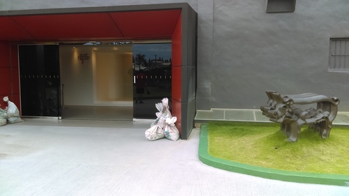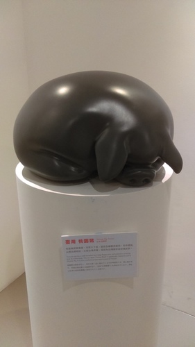 斜坡上來後會看到一些豬豬的裝置藝術品~