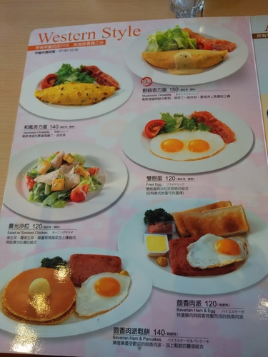 早餐的menu(菜單)~~