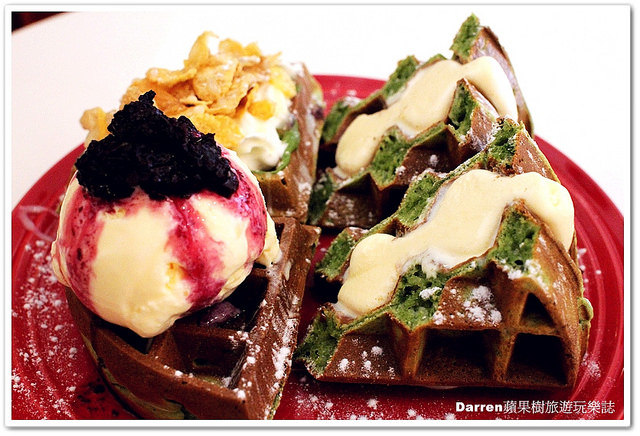 把抹茶鬆餅夾香草冰淇淋的點子很不錯,這款比較適合多人分享,不然一個人點來溶化太快有點可惜了