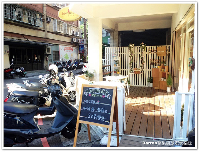 樂飲咖啡就在威尼斯影城後面的巷弄內,店面剛好就在邊間在騎樓部份用白色柵欄圍起來佈置的很溫馨