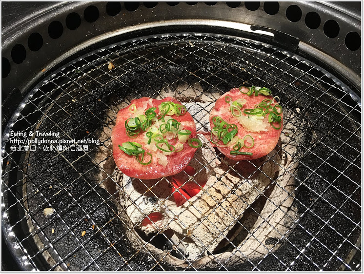 http://www.kanpai.com.tw/kanpai/其實Lun先生在我坐月子期間,就已經跟同事來乾杯過,所以熟門熟路的點餐,印象中點了鹽蔥牛舌、牛五花、牛肋條、生菜set...之類的,有點忘了,其中牛舌是必點的,我們還點了2份。