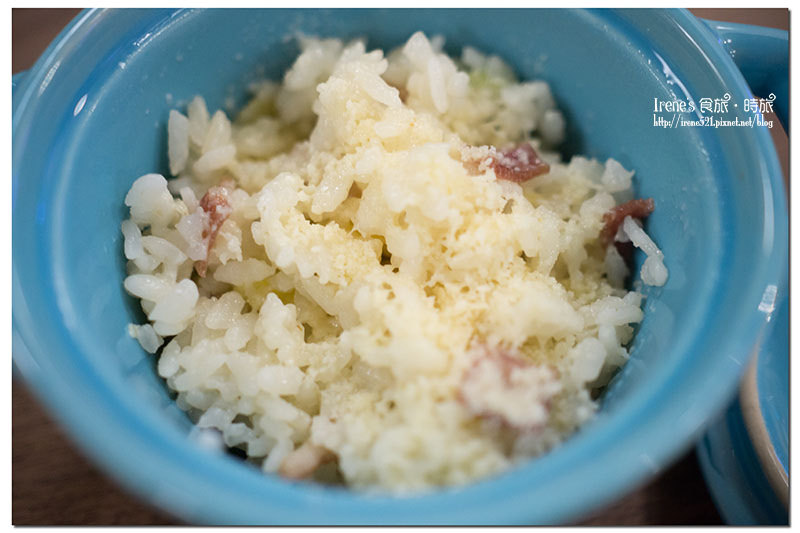 另外裝的一盅白醬時蔬燉飯份量也很少,少了燉飯的濕潤滑口,