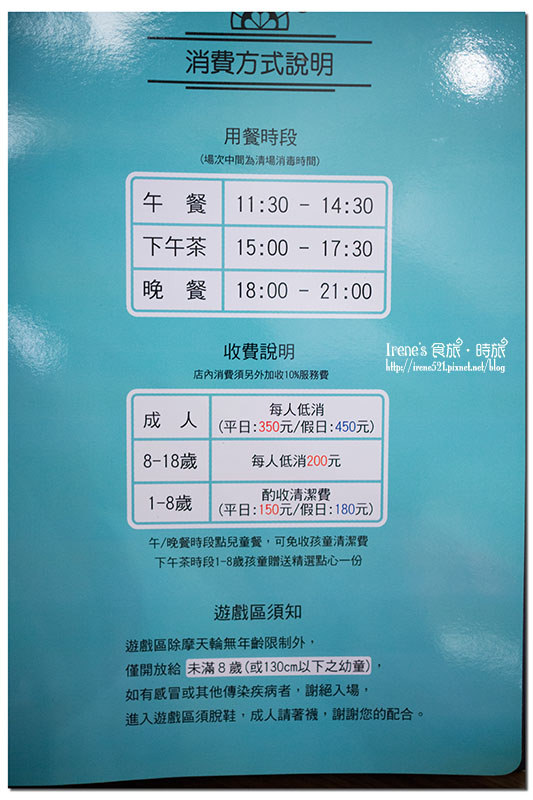 大人低消平日350元/假日450元,