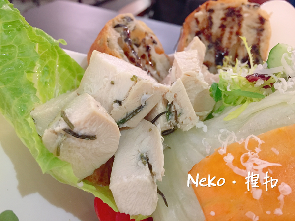 香料醃過的雞肉,軟嫩好吃、配上自家切片麵包,外酥內軟~最喜歡的是酸甜的蜂蜜優格醬,檸檬汁下得恰到好處,非常開胃唷!