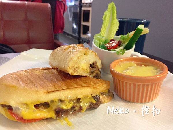 看過「五星主廚快餐車」後除了感動,對於古巴三明治就有濃厚興趣~忍不住想嘗試,牽絲的起司也太吸引人了!麵包很有口感,建議直接豪邁地拿起來咬吧,用切的會有點小小的辛苦XD