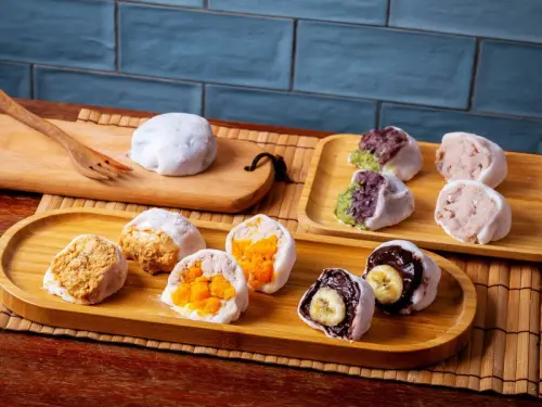 爆漿丸分別包的食材有:明太子、鮮肉、芋泥、起士,
