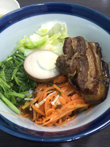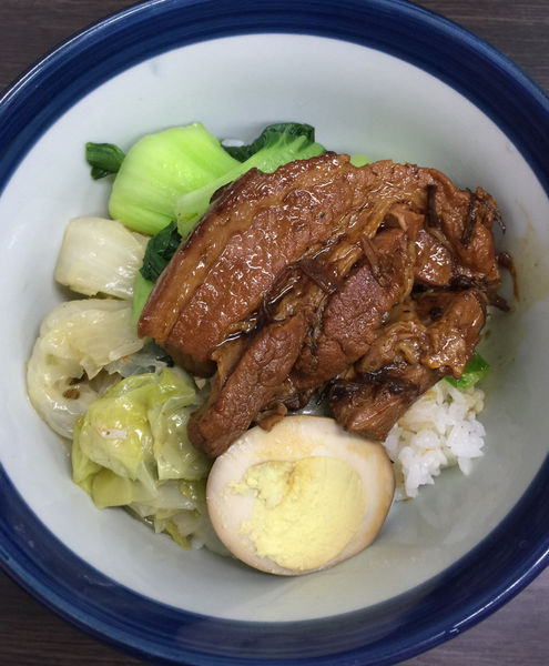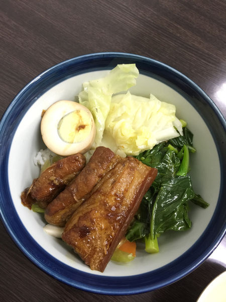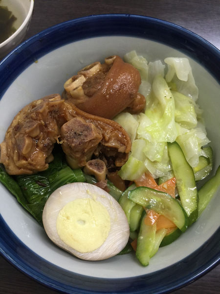 豬腳飯,肉質方面形狀完好但一入口就化開,輕鬆骨肉分離,非常喜愛,味道的話原本猜想會與控肉一樣的質感但不知是當天火候因素還是其他,比較沒有控肉那樣入味,不過其實也才差了那一點點~