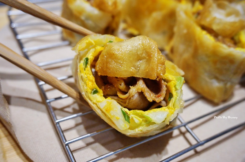 外皮同樣煎的金黃焦脆 以青蔥點綴