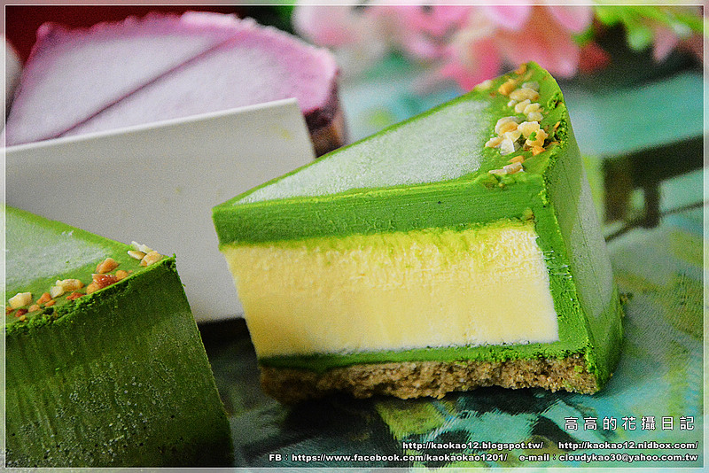 (請忽略粗魯的我不小心讓抹茶乳酪蛋糕沾染上一抹莓果的紫)