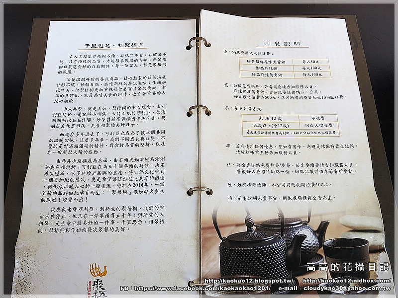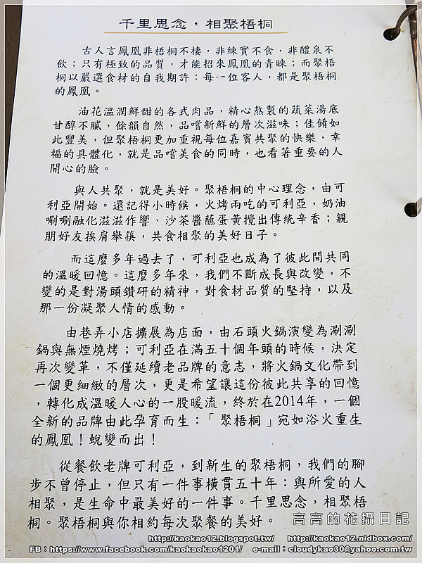趁著『騎車比較慢』的同伴還沒來,我先來看看聚梧桐menu上的介紹先,