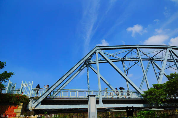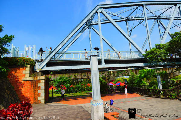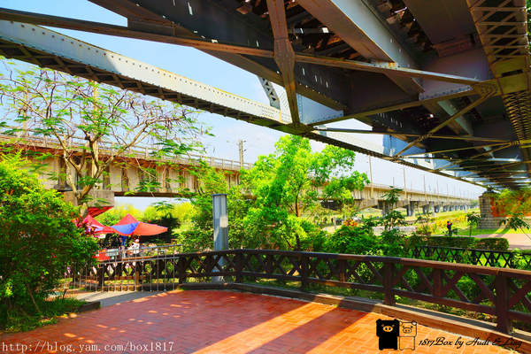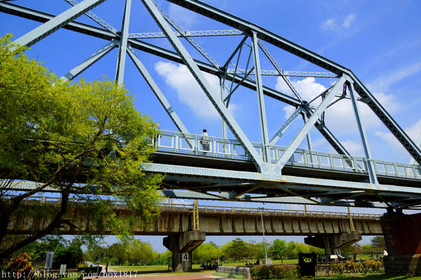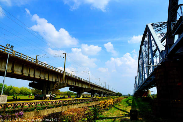 好天氣,藍天白雲來做伴,抵達大樹舊鐵橋時,看到許多人在綠地裡野餐,