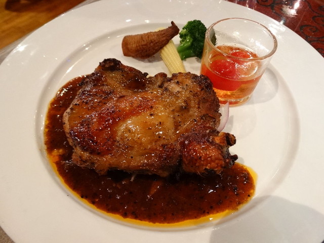 雞腿煎得表皮微酥,內裡鮮嫩多汁,師傅的功力真是棒