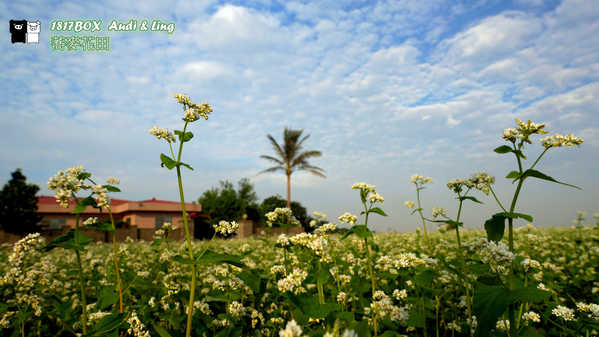 蕎麥花田與藍天白雲,再加上鄉村建築,超有fu,
