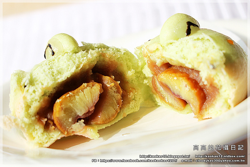 然後外層綠色的青蛙皮是用抹茶染色的,