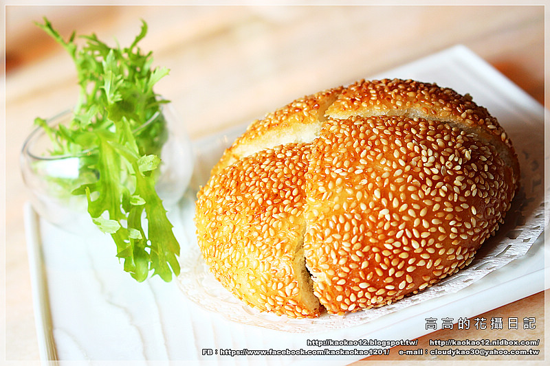 香蔥芝麻大餅還頗大一個,上桌前已經先切開成四等份,讓我們比較好分食。